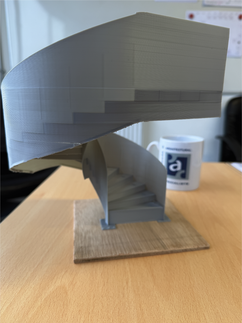 Figures 4 & 5 show a recently installed helical staircase as a 3D printed prototype alongside the finished installation on site.