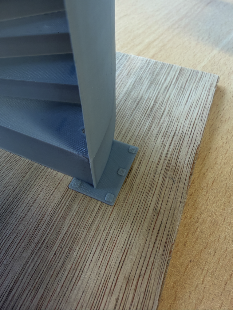 Figure 6 captures the plate washers and fixing bolts on the stairs to demonstrate the intricate, minute detail achievable in 3D printing.